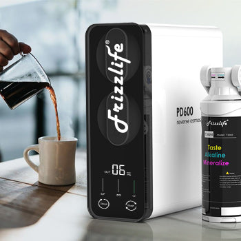 Frizzlife also launches a product line of tankless reverse osmosis systems[14]. By employing 400-600 GPD RO membrane which has production capacity of 400-600 gal. Of water per day, and a powerful pump, the RO units is able to abandon the bulky and unsanitary water storage tank, serving you instant fresh water whenever you open the dispenser. Find more information.[14]