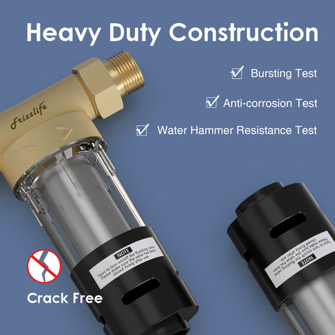 Whole house sediment pre-filtration systems are mostly installed before whole house water filters or other water appliances as a pre-filter to first remove large particles from raw water, before the water goes into the home water supply system. It can largely increase the service life of follow up water appliances and water filters. It is made of anti-burst high-grade molecular materials which can resist massive water pressure.