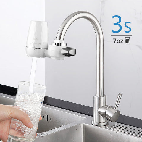 Faucet filters [11] are small devices that you install in your sink faucet directly, and they have a button to allow the water to pass or not through the filter. You can run it directly without being filtered, or “force” it to pass the faucet filtered to get pure water, which is ideal to drink and cook.