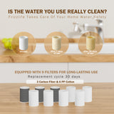 【Package Includes】 The system includes 6 PP cotton and 2 carbon fiber filter cartridges