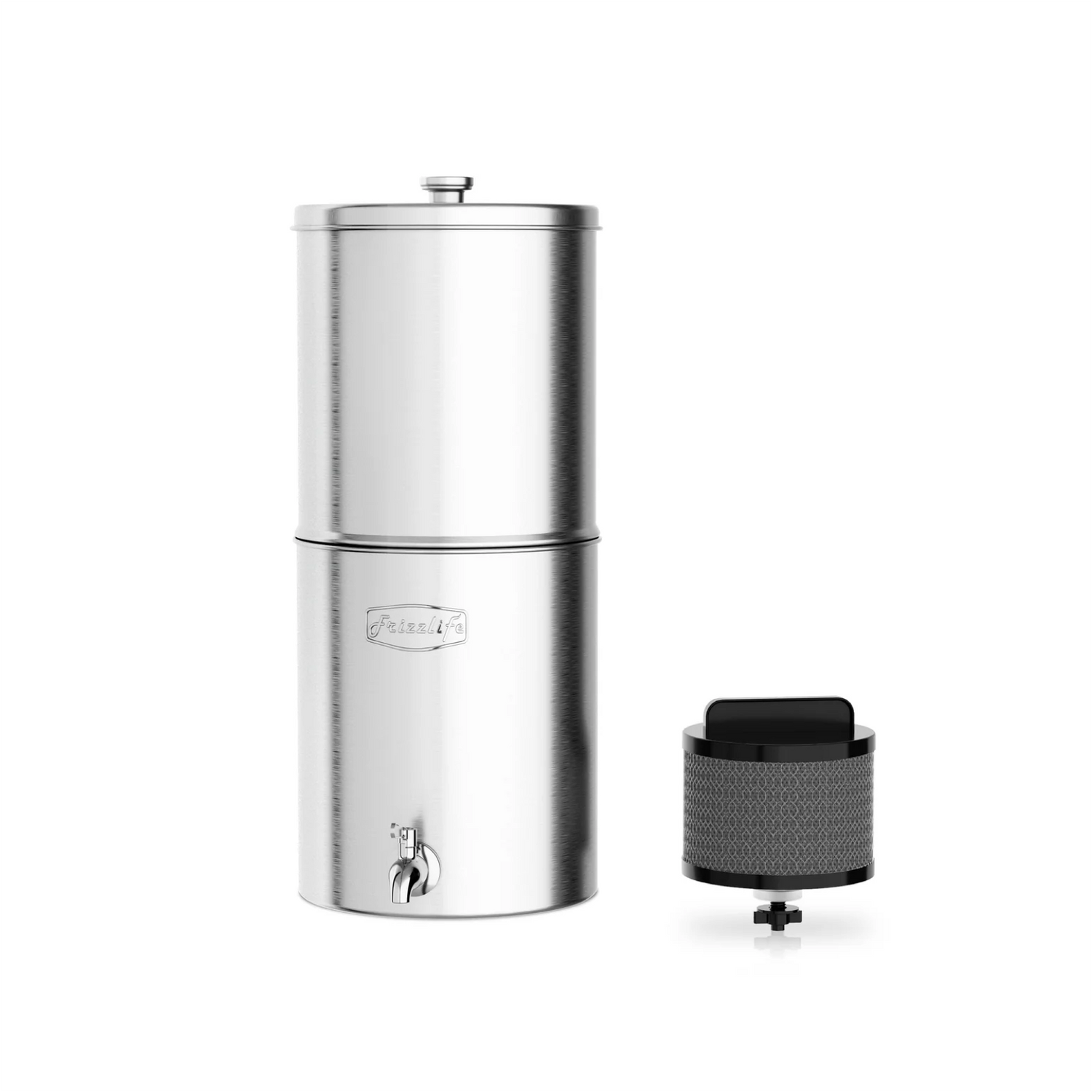 Frizzlife G190 Schwerkraft-Wasserfiltersystem, NSF-zertifiziertes Filterelement reduziert 99,9 % Chlor, schlechten Geschmack & Geruch, entfernt über 10 Verunreinigungen, 304 Edelstahl-Auftischsystem für Zuhause und Outdoor, 1,75 Gallonen