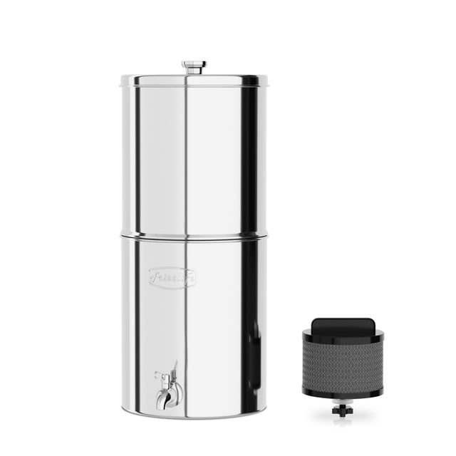 【ENJOY INSTANT CLEAN WATER WITHOUT POWER】-The Frizzlife G210-STANDARD is a gravity water filtration system that filters clean water. Simply pour water into the top, and let the Frizzlife filter and gravity do the rest. This system does not require electricity. It consistently delivers clean and delicious water for parties, camping, yard work, RV trips, or emergency situations. It meets your needs in any scenario