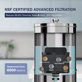 【NSF CERTIFIED ADVANCED FILTRATION】-The Frizzlife filter uses advanced filtration elements to achieve deep water filtration. It has been tested and certified by NSF to effectively reduce 99.9% of chlorine, bad taste, and odor, as well as 10+ other impurities commonly found in water sources. NOTE:It is normal for the first water to take 3-5 minutes to filter out