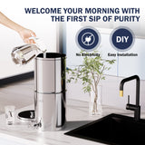 【FOOD-GRADE 304 STAINLESS STEEL DURABILITY】-Frizzlife's gravity filtration system features BPA-free 304 stainless steel, which prevents water from developing a metallic taste due to contact with inferior materials. The system is resistant to deformation and dents from drops or impacts, maintaining the freshness and taste of the water while effectively preventing the growth of contaminants. The unique manufacturing process ensures that the product is leak-proof