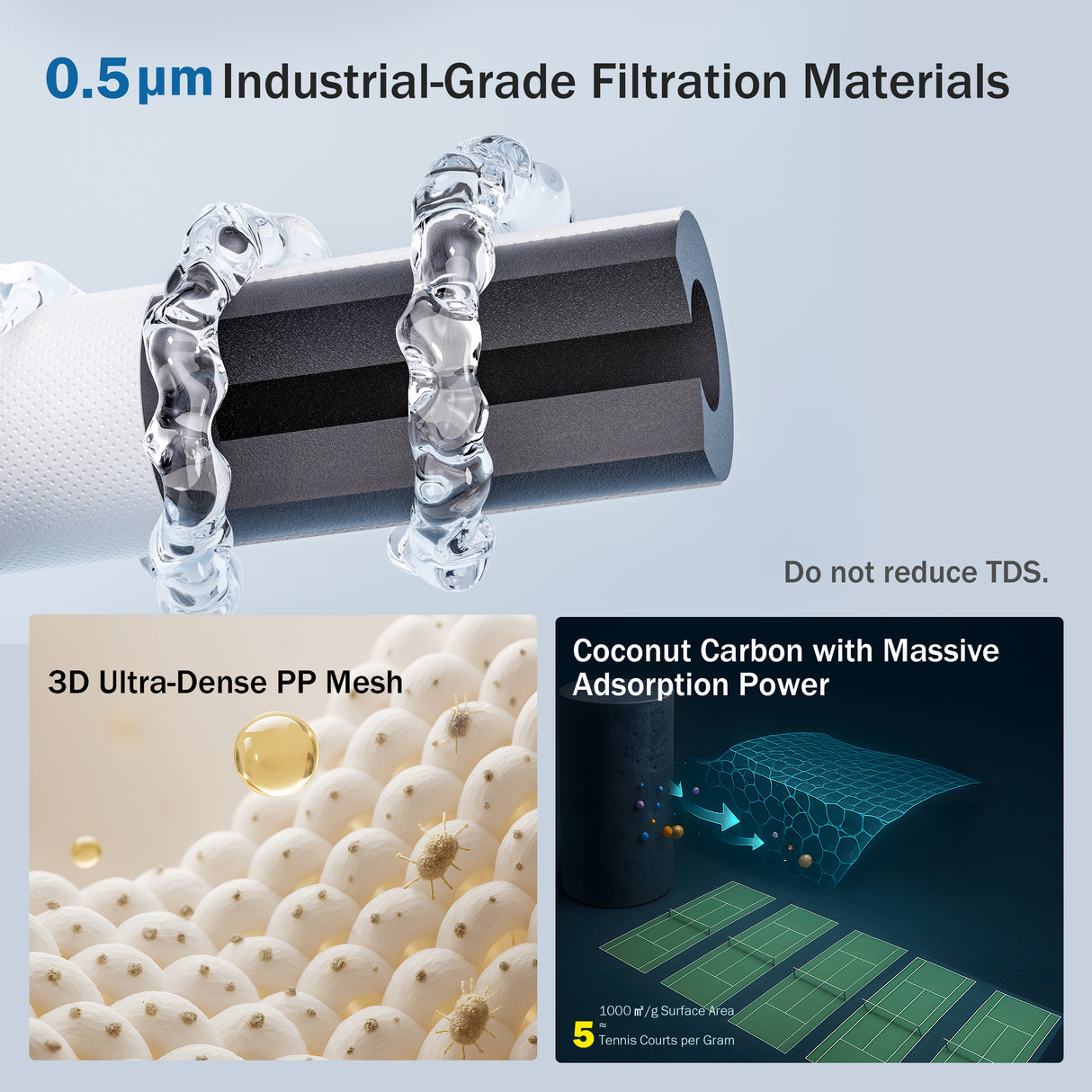 Upgraded High Flow Rate & Multi-Usage--Maintains strong water pressure (2.5 GPM flow rate) for instant filtered water. Ideal for cooking, washing fruits & veggies, and cleaning dishes without watermarks.