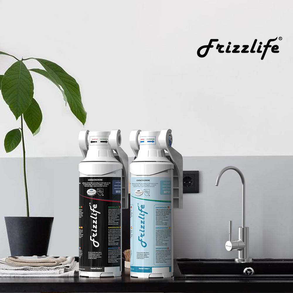 Systèmes de filtration d'eau sous évier certifiés NSF 42 et 53 Frizzlife - Précision de filtration au carbone de noix de coco la plus élevée à 0,5 micron.