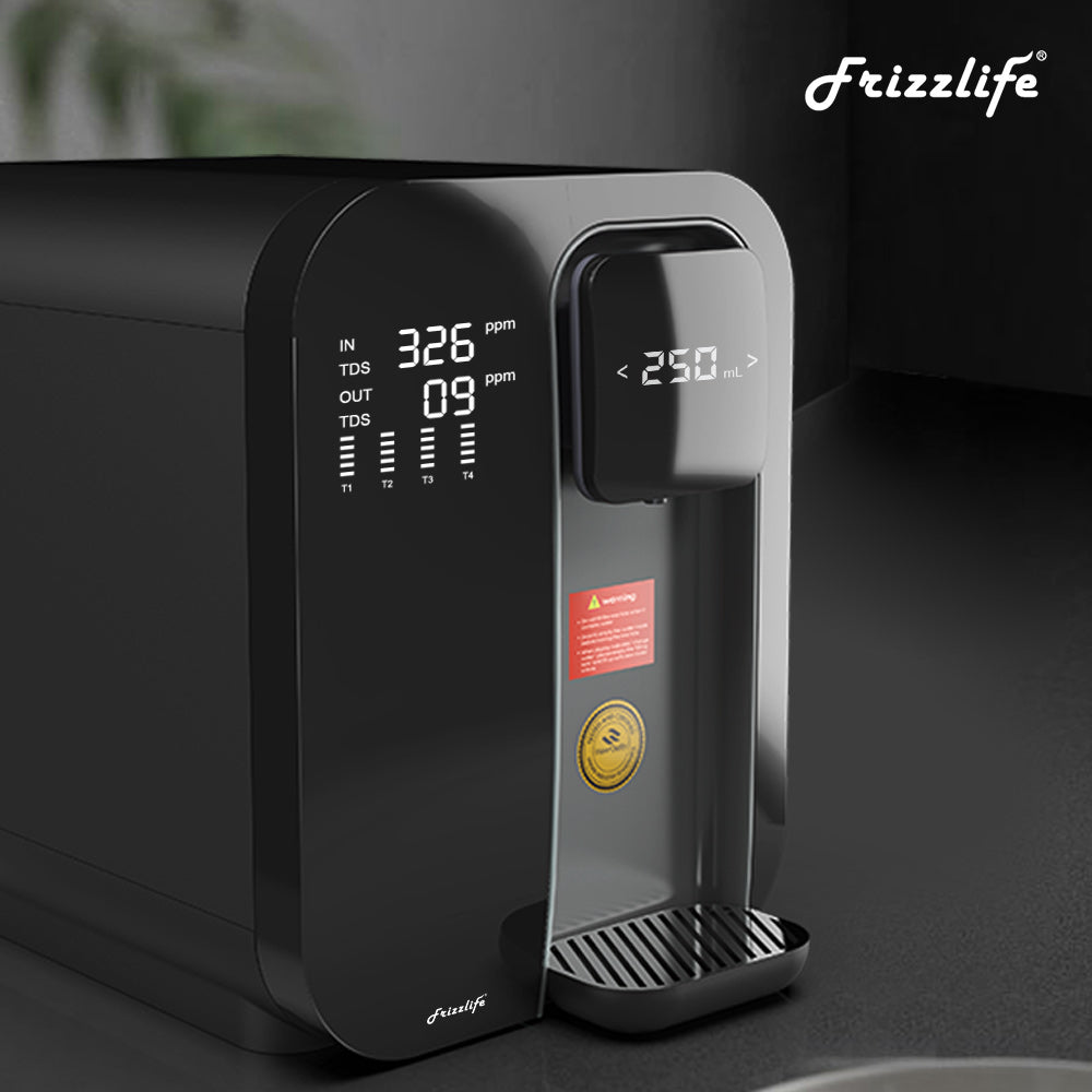 Portable. Sans réservoir. Frizzlife WA99 Système d'osmose inverse sans installation sur comptoir.
