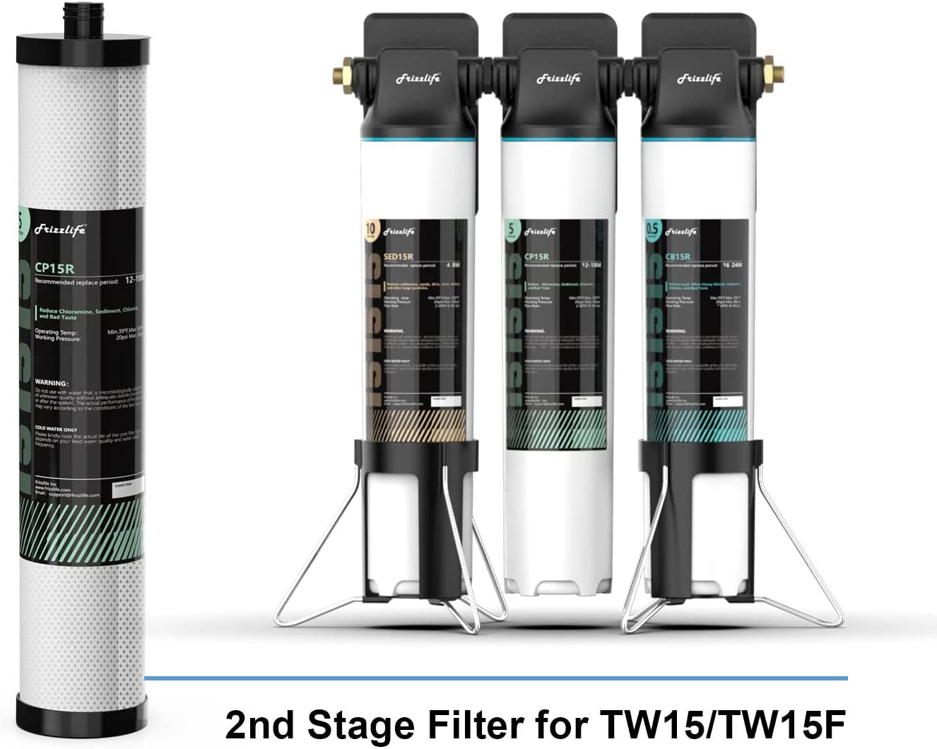 - Compatible Replacement Filter for Frizzlife under sink water filtration systems: 2nd stage replacement filter for TW15. It's the only core filter cartridge you will need to replace which is eco-friendly and cost effective. If you found the inner core replacement is rather difficult, you could search the cartridge with filter.