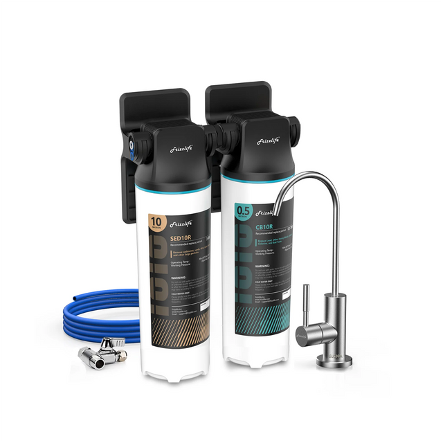 - 【Green Choice & Easy Replacement】 Different from other brands that replaces the whole plastic cartridge, the Frizzlife water filtration system only requires you to change the inner core filters. It remarkably cuts down the plastic waste and lowers the future replacement cost. With the Auto Shut-off design, the replacement only requires a simple twist without cutting off the water supply. Besides, the system does not produce any wastewater. Search “SED10R” and “CB10R” for the replacement filters.