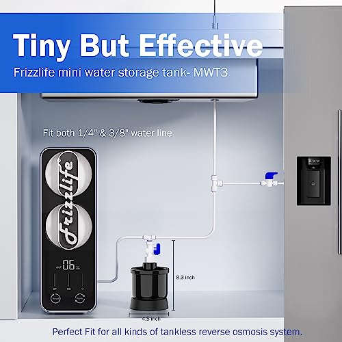 Mini réservoir d'eau sous pression Frizzlife pour tous les systèmes d'osmose inverse sans réservoir, petit réservoir de stockage d'eau pour PD600, PX500A, PD800, PD1000, PD400, G3P600, G3P800, G2, compatible avec les tuyaux d'eau de 1/4" et 3/8"