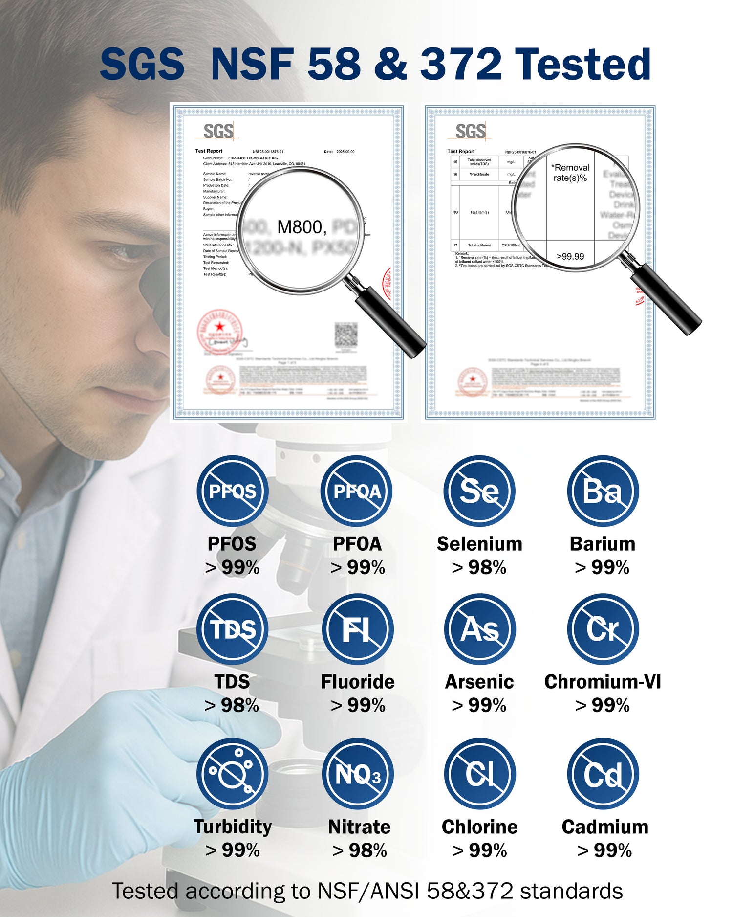 [NSF-Certified Safety & Purity] Drink with confidence! Independently tested and certified against NSF/ANSI 58 & 372 standards, this reverse osmosis system effectively reduces lead, arsenic, fluoride, and many other harmful impurities.