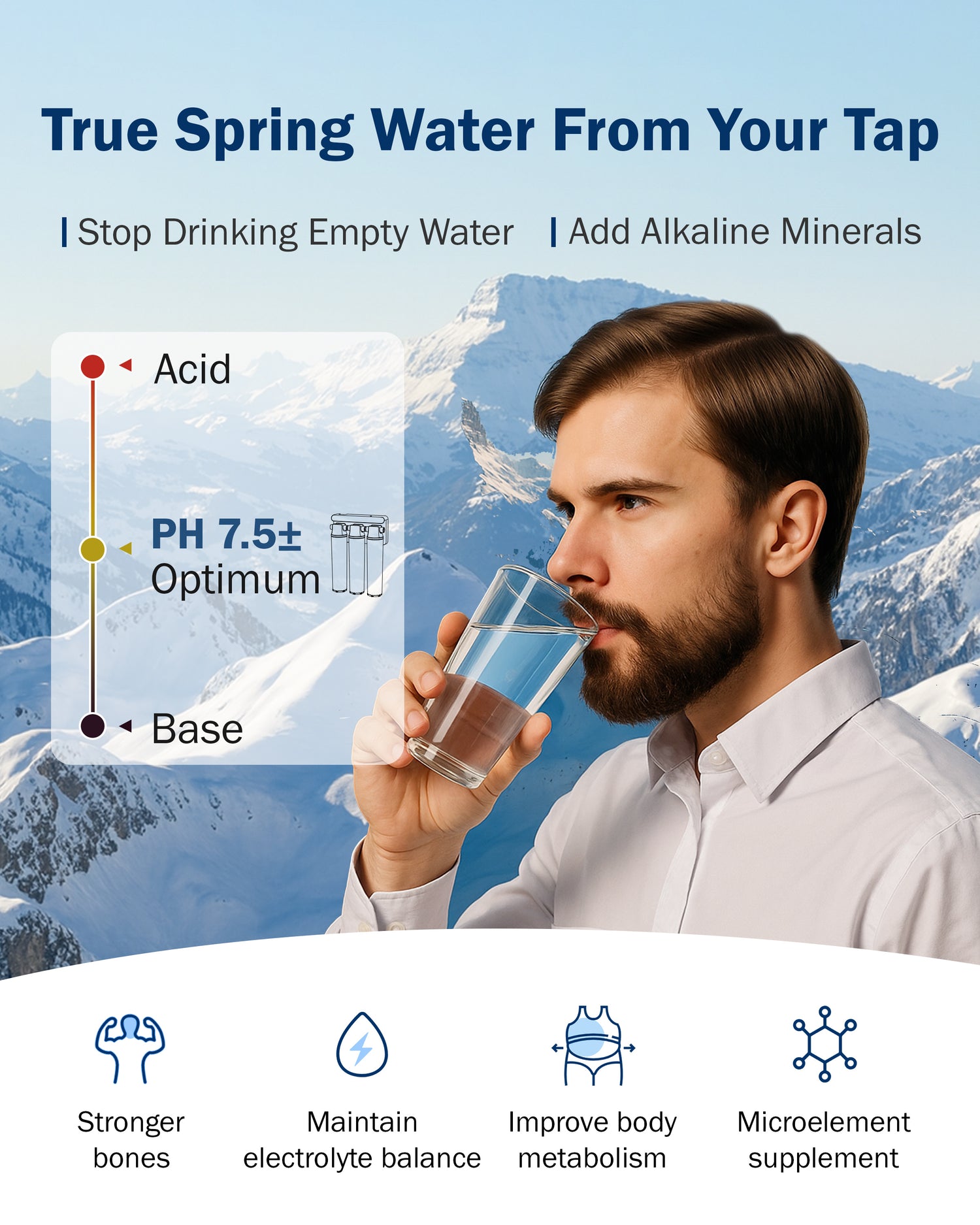 [4:1 Ultra-Efficient Ratio] Save water and money! With a dynamic 4:1 pure-to-drain ratio, this under sink RO system maximizes efficiency—producing less wastewater than conventional systems without sacrificing performance. The 12-month carbon block filter, 12-month remineralization filter, and 24-month RO filter lessen replacement hassles and help the planet, ensuring a sustained clean water supply.